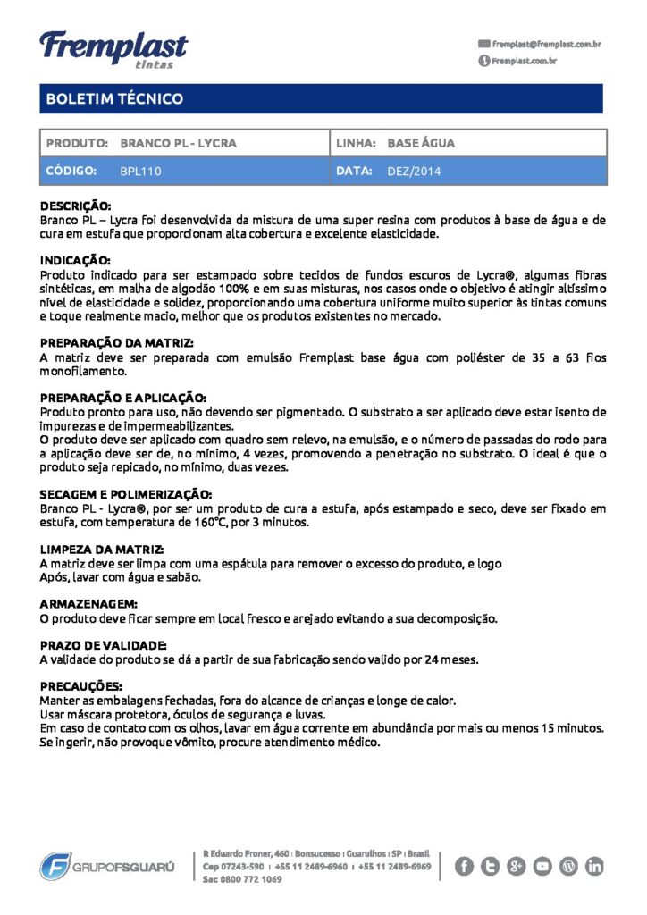 A Fremplast lança no mercado a mais completa linha de tintas ecologicamente correta para o mercado de calçados e toda linha esportiva. São tintas serigráficas livres de ftalatos, metais pesados e que atendem as normas ambientais nacionais e internacionais contra o uso de substâncias químicas restritas. As tintas ecológicas Fremplast vem de maneira completa em […]